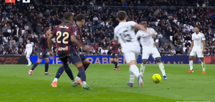 第14分鐘,貝林厄姆送任意球,巴勃羅-馬丁內(nèi)斯主罰打門被擋