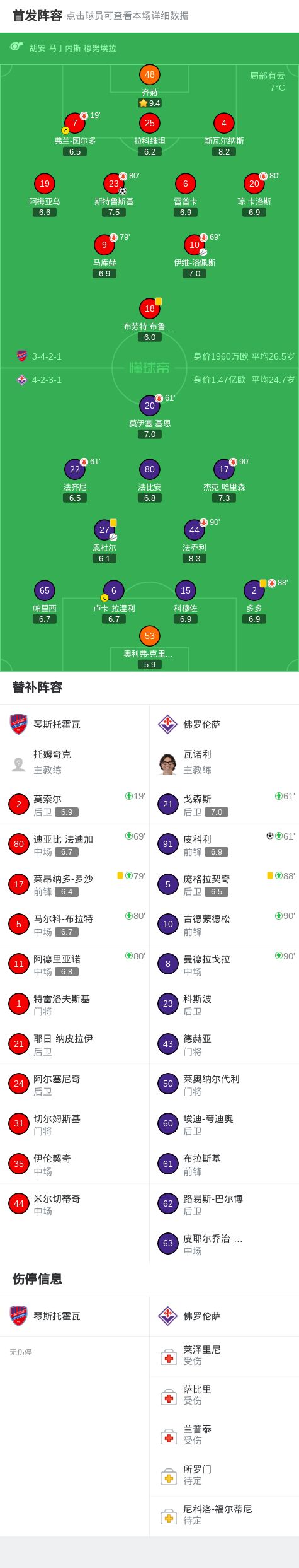 北京時間3月20日歐洲協(xié)會聯(lián)賽 1/8決賽次回合,琴斯托霍瓦對陣佛羅倫薩。上半場斯特魯斯基首開記錄下半場恩杜爾射門皮球碰到皮科利折射入網(wǎng),補(bǔ)時階段龐格拉契奇超遠(yuǎn)距離破門鎖定勝局。最終比分琴斯托霍瓦 1-2 佛羅倫薩。兩回合總比分琴斯托霍瓦2-4佛羅倫薩。